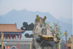 行于殿堂楼舍之中,袁志伟老师向同学们一一介绍重阳宫背后的历史沿革与全真教过往的发展历程:王重阳主张儒、释、道三教合一,以"三教圆通,识心见性,独全其真"为宗旨,故名其教为全真。其弟子丘处机受到元太祖成吉思汗的器重,使得全真教在北方愈益兴盛,重阳宫则因其独特的历史地位成为全真教祖庭。